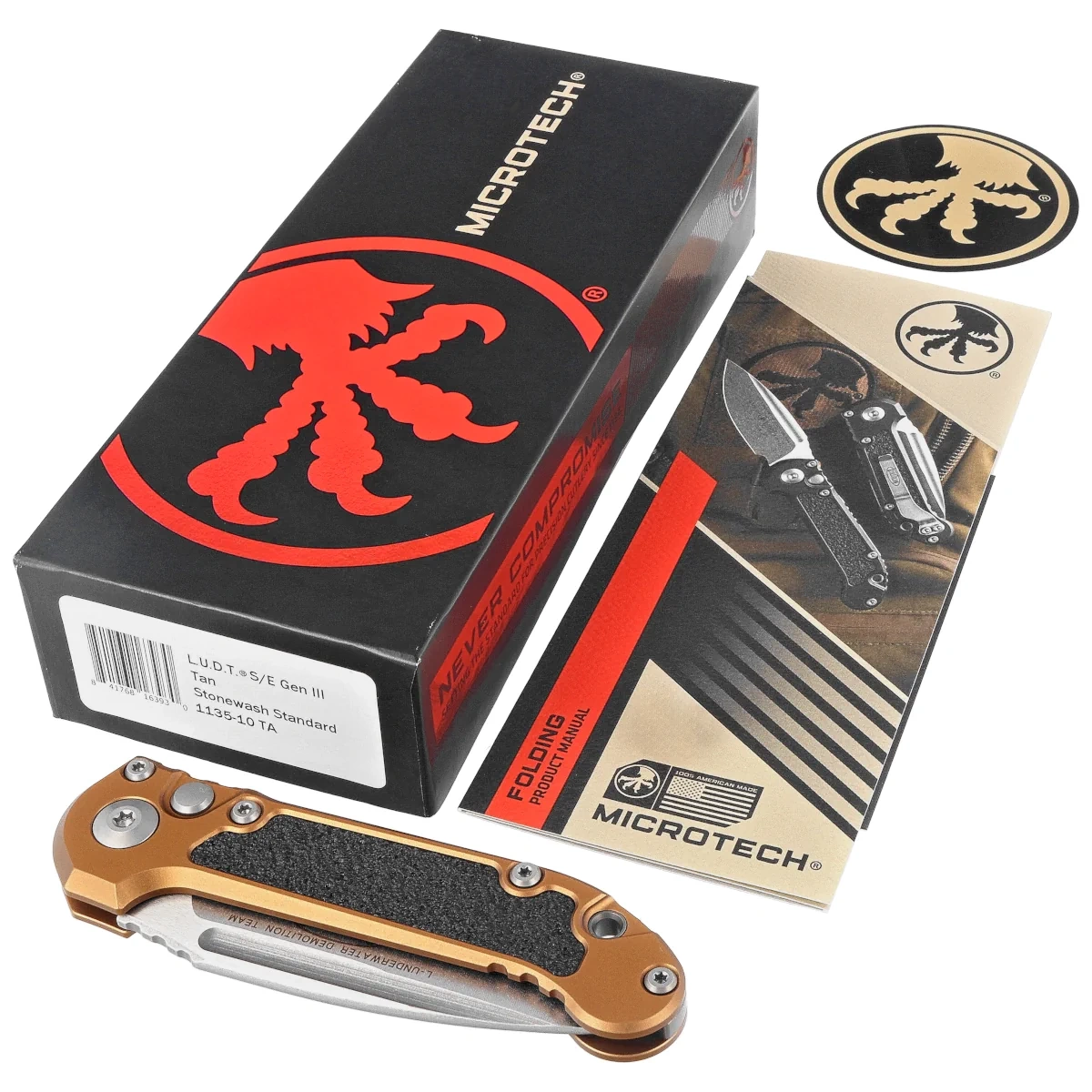 Microtech LUDT Gen III S/E Knife Tan Aluminum, Stonewashed M390MK by Tony Marfione (1135-10TA)