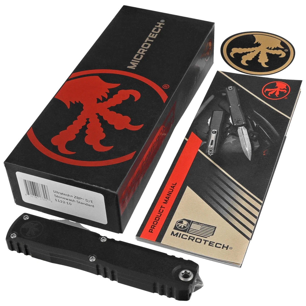 - Ultratech Gen 3 ZBP D/E Black Aluminum, Stonewashed is an upgraded version of the iconic Microtech knife: new glass striker, Crud Kutter system, Dual-Fuel Drive Train and Zero Blade Play™ - no blade play when unfolded.