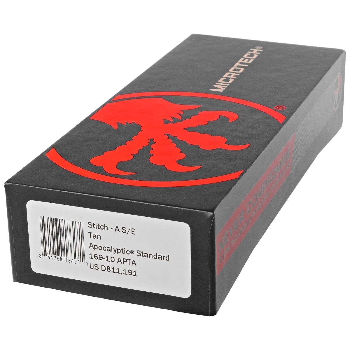 Stitch-A S/E Tan Aluminum, Apocalyptic automatic version of the bold design of the versatile tactical knife, the result of a collaboration between Sebastijan Berenji and Microtech. A wide Blade and a simple handle, comfortable in every grip, give a strong tactical knife made with attention to the smallest details and the best materials. A faithful companion that will never disappoint
