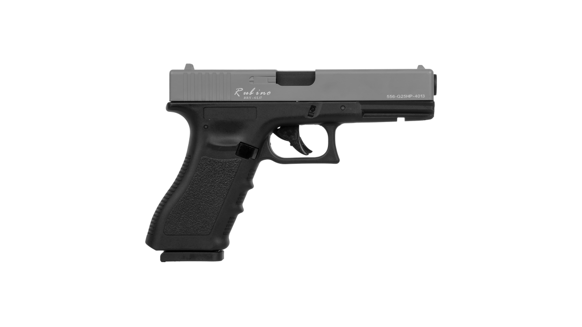 • Niksan Defense NKS GL17, CO2-powered BB air pistol, a faithful replica of the Glock 17. This model features a metal slide with a blowback system that realistically simulates the operation of a real firearm. Grey slide finish.