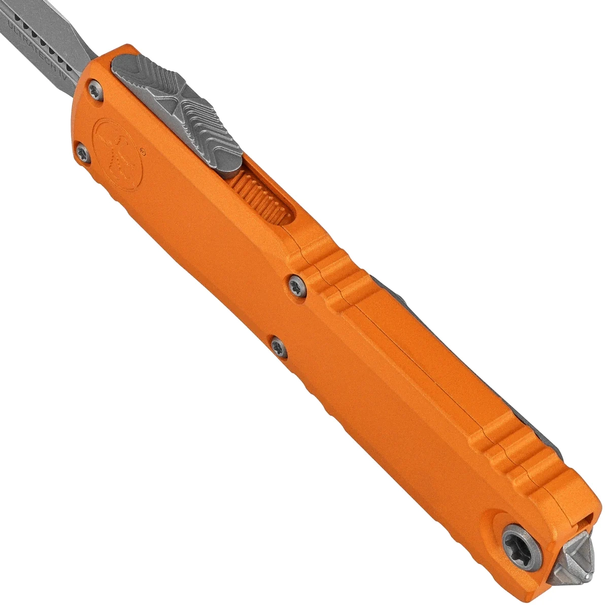Ultratech OTF Line - Microtech 's flagship OTFLine model , which set the standard for all Out The Front knives. Ultratech 's proprietary trigger spring design, which remains in the “resting” position at all times, except when used. This prevents the spring from fatigue, reducing wear and tear on the internal trigger mechanisms which ensures that the knife will always function effectively. The light weight, the ability to open and close with one hand, the slim shape of the Handle and the sharp blade make it a one-of-a-kind knife, available only from Microtech.
