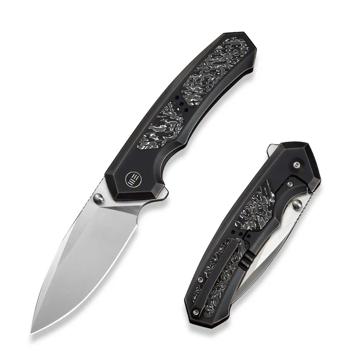 356,82 €Corwyn Bronze-Black Titanium/Aluminum Foil Carbon Fiber, Satin is an advanced high-end folding knife designed for collectors, EDC enthusiasts and professionals, who expect perfect precision and refined design. This is a model that represents the highest level of craftsmanship of the We Knife brand , combining modern manufacturing technology with prestigious materials and uncompromising functionality. Blade made of Böhler M390 powder steel, with drop point profile, provides maximum sharpness retention, wear resistance and high edge stability. The flat grind guarantees aggressive yet controlled cutting in any situation - from precision EDC tasks to field work. The Handle combines 6AL-4V grade titanium with decorative carbon fiber inserts . Thanks to the milling and undercut, it provides excellent ergonomics and grip security even when wearing gloves. The subtle texture and rounded edges emphasize the comfort of use, and the black deep carry clip allows the knife to be carried discreetly in any pocket. The opening mechanism was based on a flipper and a thumb stud, which gives the user freedom of choice. The blade moves on ceramic bearings, guaranteeing smooth movement without resistance. The frame lock ensures the rigidity of the design and full safety during operation. Corwyn is a model that stands out from the competition - offering precision, reliability and unique style. A knife for those who do not recognize compromise in either performance or aesthetics.