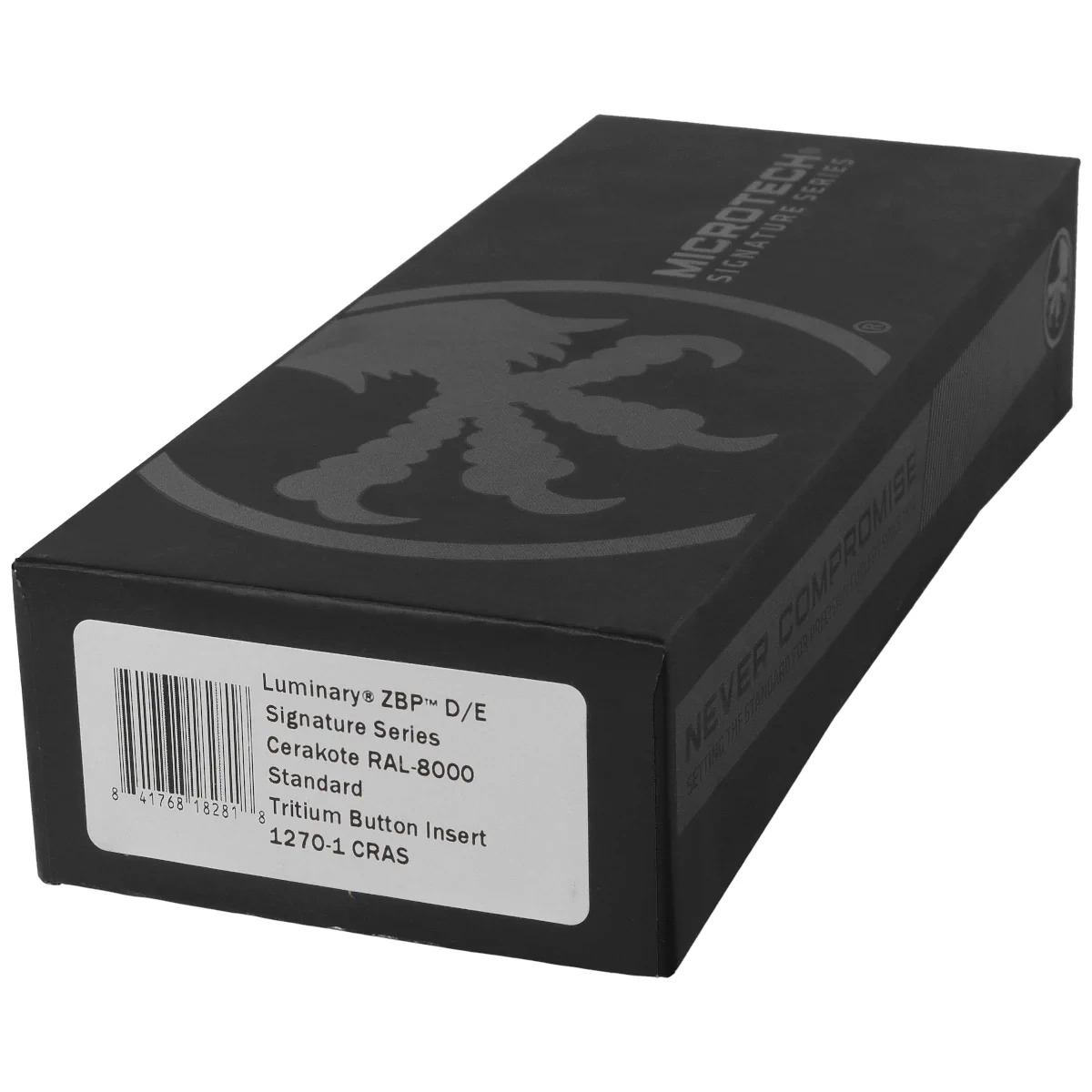 - Luminary ZBP D/E Signature Cerakote RAL-8000 Aluminum, Cerakote RAL-8000 is a new model from Microtech with an innovative ZBP system. Crud Kutter System, Dual-Fuel Drive Train and Zero Blade Play™ - no blade play when unfolded.