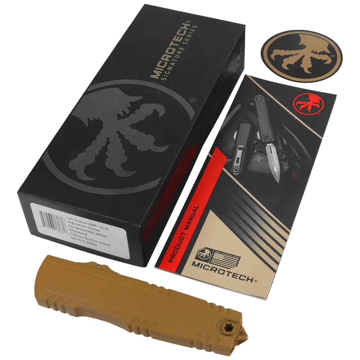 Microtech Luminary ZBP D/E Signature OTF Knife Cerakote RAL-8000 Aluminum, Cerakote RAL-8000 M390MK by Tony Marfione (1270-1CRAS)