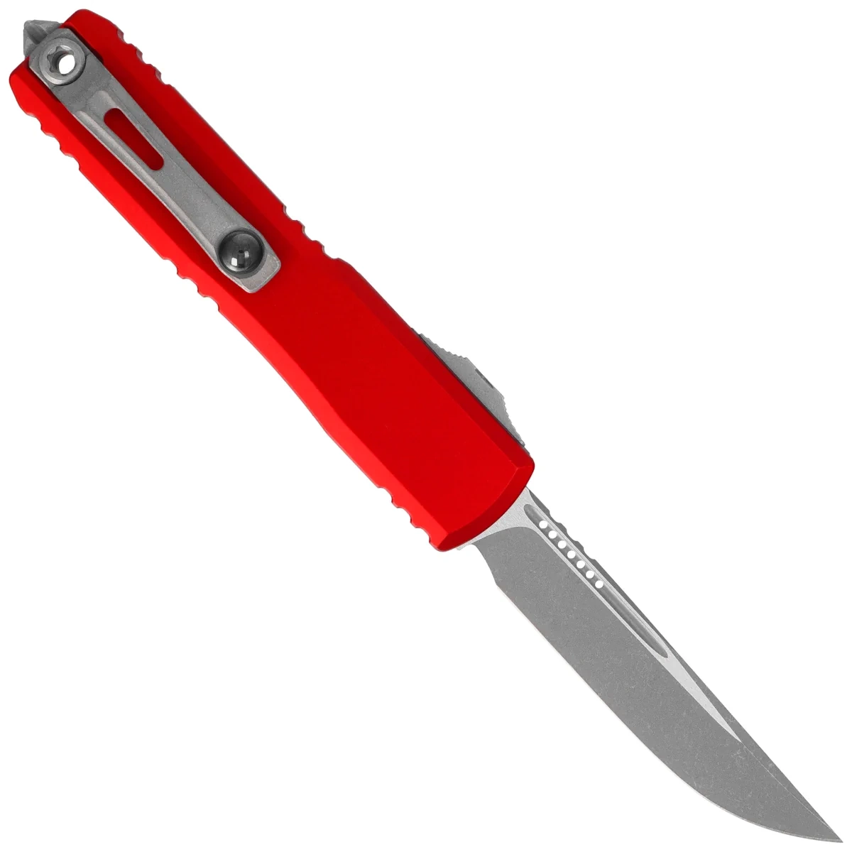 Ultratech Gen IV S/E Red Aluminum, Apocalyptic is a full-size OTF (Out The Front) automatic knife from Ultratech. The fourth generation is distinguished by a number of improvements, such as; Crud Kutter™, Dual-Fuel Drive Train™. The Handle was also redesigned, equipping it with solutions known from other models. Working in D/A (Double Action) mode, it allows the blade to be instantly extended and retracted with a single thumb movement. The design by Tony Marfione, owner of Microtech Knives, combines modern design with the highest quality workmanship.