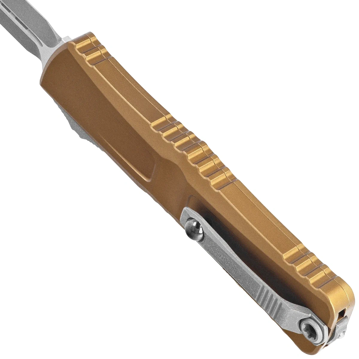 Microtech Combat Troodon Gen III D/E OTF Knife Tan Aluminum, Apocalyptic M390MK by Tony Marfione (1142-10APTA)