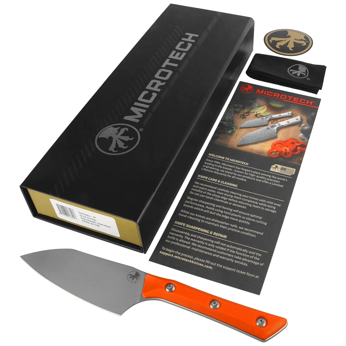 Microtech Santoku Knife 4.2" Ember G10, Stonewashed M390MK (3300-10EM)