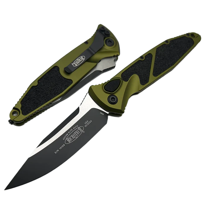 Microtech Socom Elite Auto S/E Knife OD Green Aluminum, Black M390 by Tony Marfione (160A-1OD)