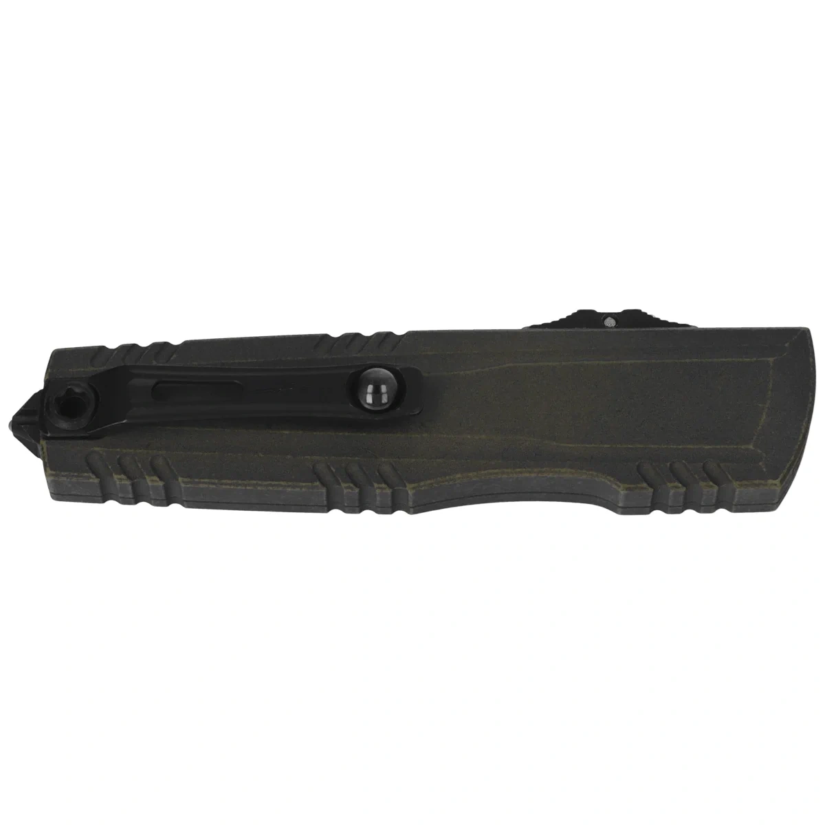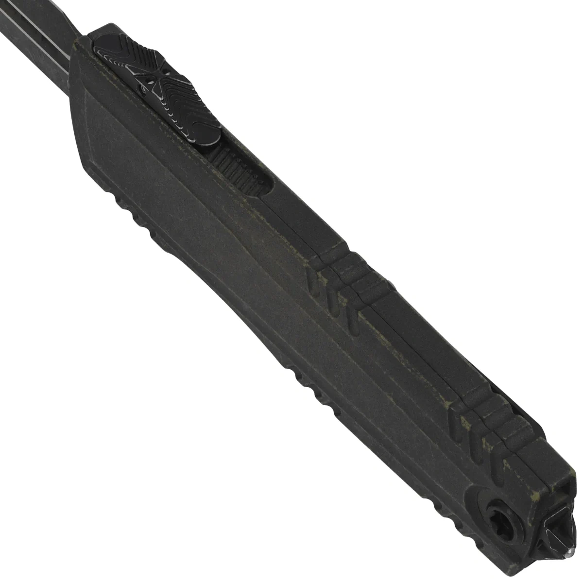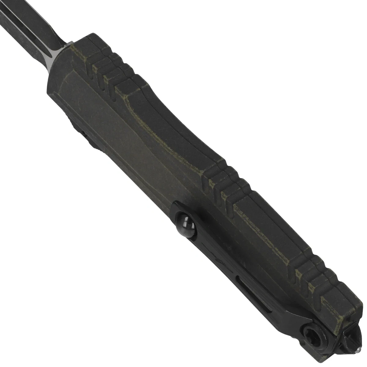 Luminary ZBP D/E Signature Weathered Grenade Green Aluminum, Weathered Grenade Green is a full-size OTF (Out The Front) automatic knife from the prestigious Signature Series. The design is characterized by the absolute absence of any blade play when unfolded - full rigidity and reliability of the mechanism. The blade machine “blade play free” is distinguished by a number of improvements such as; Crud Kutter™, Dual-Fuel Drive Train™, Zero Blade Play™. Operating in D/A (Double Action) mode, it allows the blade to be instantly extended and retracted with a flick of the thumb, guaranteeing unparalleled speed and reliability in situations requiring immediate response. The proprietary design by Tony Marfione, founder and owner of Microtech Knives, combines modern design with the highest quality workmanship to create a unique model valued by collectors and professional users alike.
