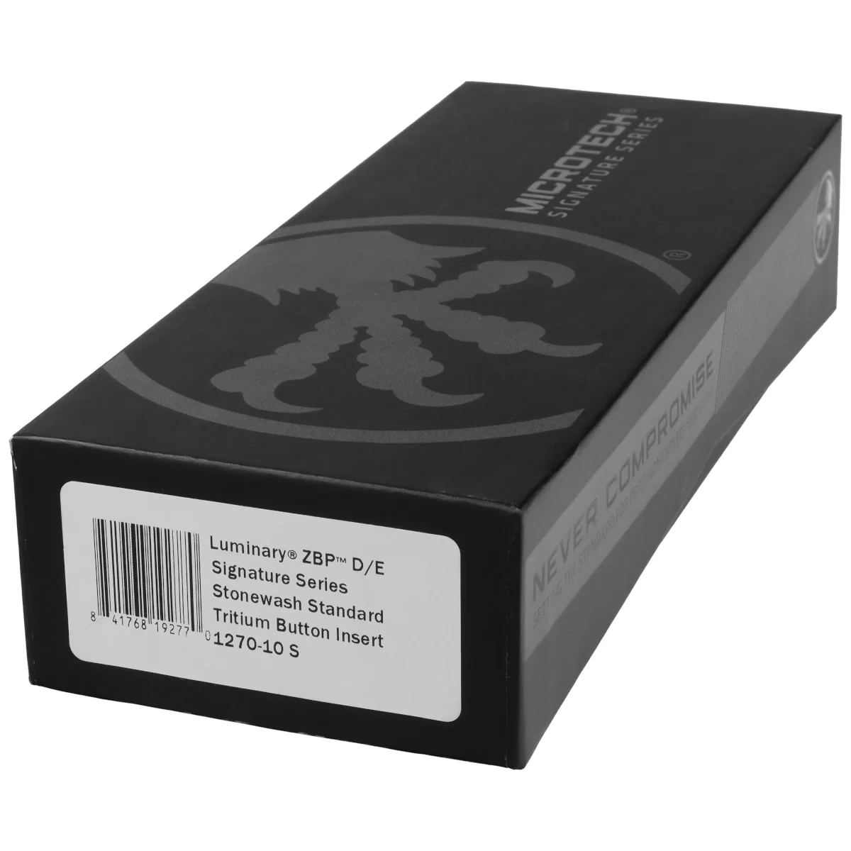 • Luminary ZBP D/E Signature Black Aluminum, Stonewashed OTF knife, the result of a collaboration Microtech and SureFire. Equipped with ZBP, Crud Kutter, Dual-Fuel Drive Train, Zero Blade Play ensure reliability of the mechanism and no blade play.