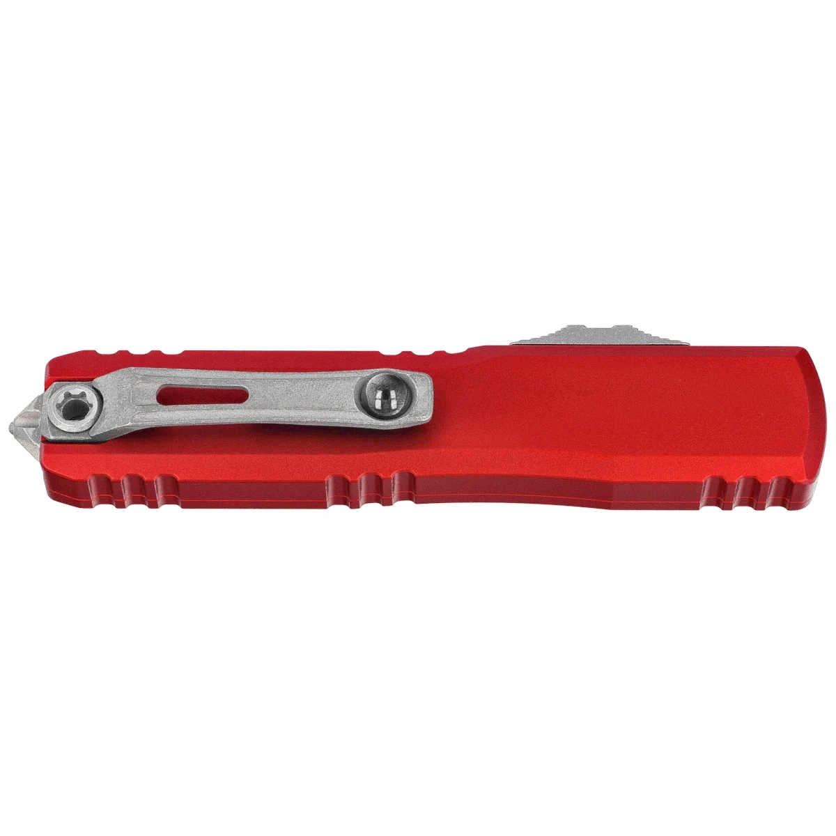 Ultratech Gen IV D/E Merlot Aluminum, Apocalyptic is a full-size OTF (Out The Front) automatic knife from Ultratech. The fourth generation is distinguished by a number of improvements such as; Crud Kutter™, Dual-Fuel Drive Train™. The Handle was also redesigned, equipping it with solutions known from other models. Working in D/A (Double Action) mode, it allows the blade to be instantly extended and retracted with a single thumb movement. The design by Tony Marfione, owner of Microtech Knives, combines modern design with the highest quality workmanship.