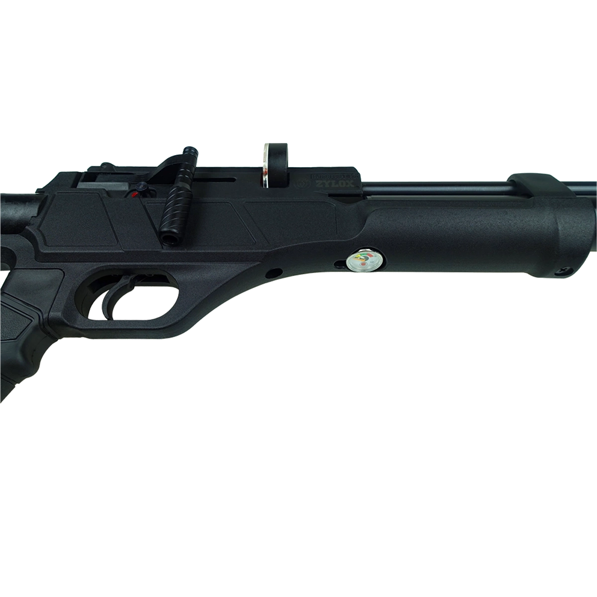 - Hatsan Zylox – the new generation of tactical PCP air rifles. Ergonomic pistol grip, a foldable AR-15-style telescopic stock, and a biathlon-style side lever. 215cc air cylinder. Comes with two magazines and air stripper. Available in 4.5, 5.5, and 6.35mm