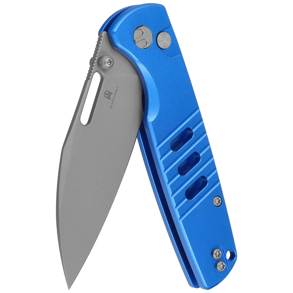 - Vector Blue Aluminum, Bead Blasting - a modern EDC knife with a compact design featuring a D2 steel blade and a lightweight aluminum handle. The button lock, two ways to open, provides confidence and functionality for everyday use.