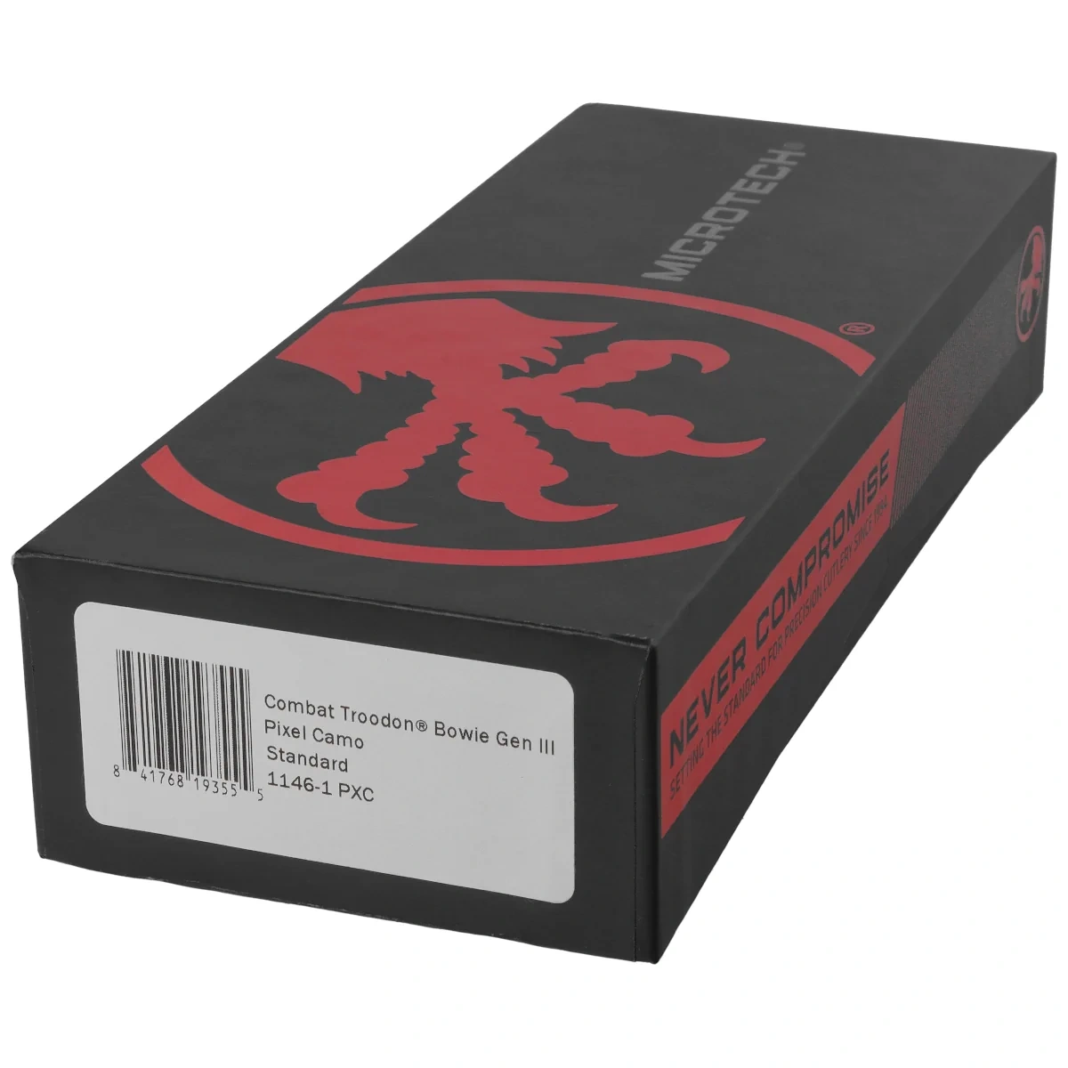 Combat Troodon Gen III Bowie Signature Pixel Camo Aluminum, Pixel Camo this largest of the automatic knives is the pinnacle of precision engineering and tactical prowess in the field of OTF (Out The Front) knives. Built for a wide range of utility applications, it boasts a 25% larger size compared to the flagship Troodon. Precisely crafted, it features a sophisticated and hellishly fast mechanism that extends the razor-sharp blade. 100% made and assembled in the USA. Designed by Anthony Marfione, knifemaker and owner of Microtech Knives.