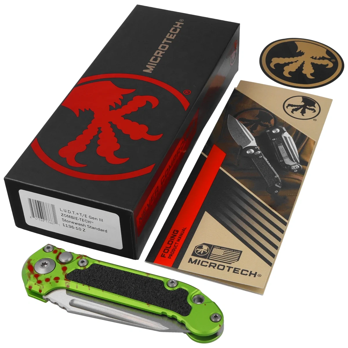 Microtech LUDT Gen III T/E Automatic Knife Zombie Aluminum, Stonewashed M390MK by Tony Marfione (1136-10Z)