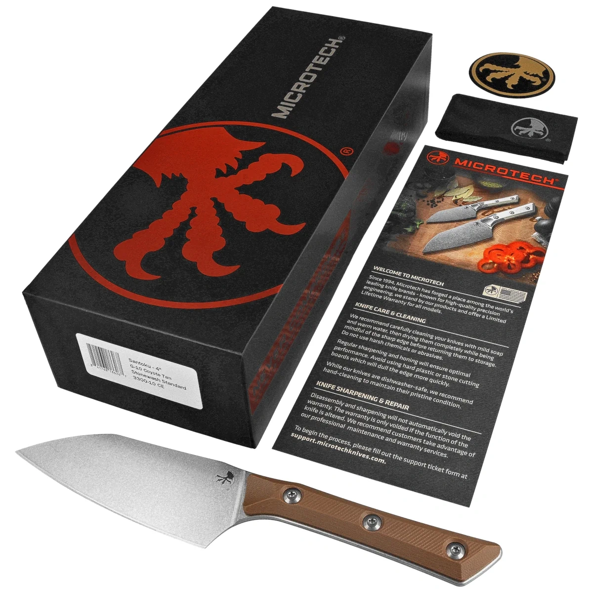 - Santoku 4.2" Coyote Tan G10, Stonewashed - a premium kitchen knife that combines a precision M390MK steel Santoku Blade with an ergonomic G10 Handle. A unique combination of durability, precision and modern aesthetics for the discerning user.