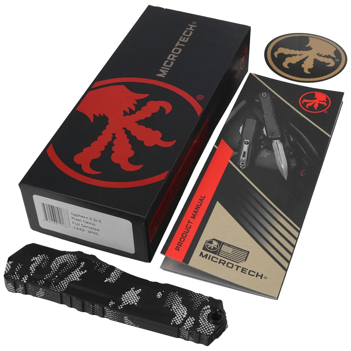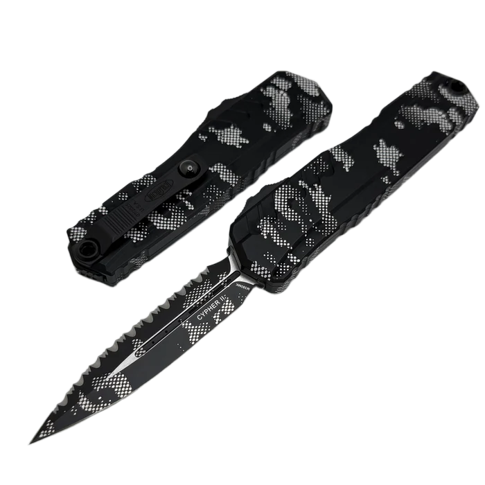 Microtech Cypher II D/E OTF Knife Pixel Camo Aluminum, Pixel Camo F/S M390MK by Deryk Munroe and Tony Marfione (1242-3PXC)