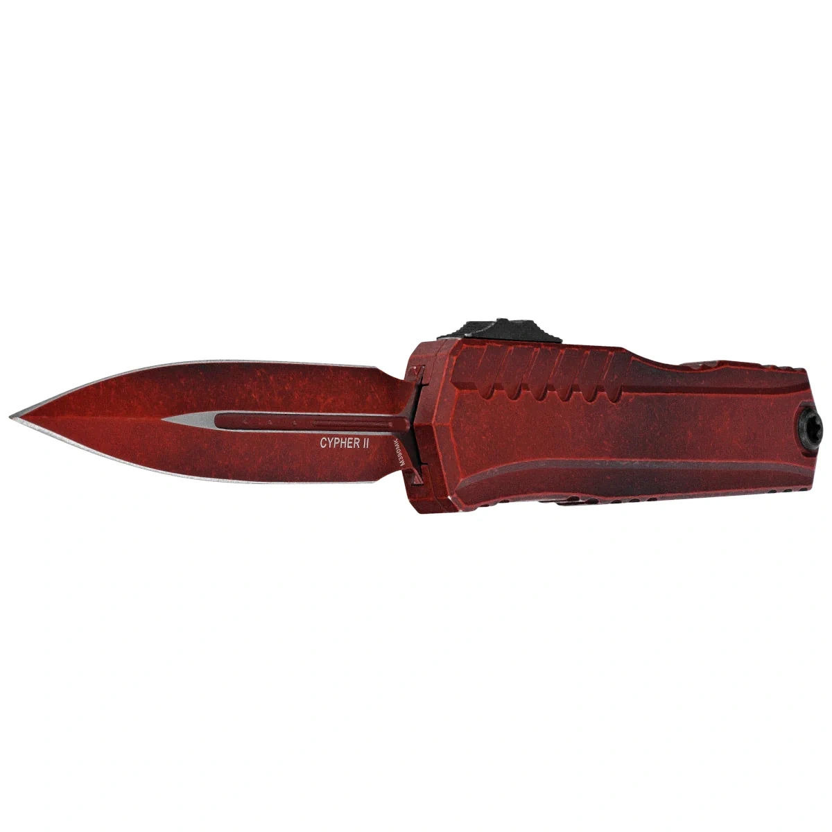Microtech Cypher II D/E OTF Knife Weathered Crimson Aluminum, Weathered Crimson M390MK by Deryk Munroe i Tony Marfione (1242-1WCM)