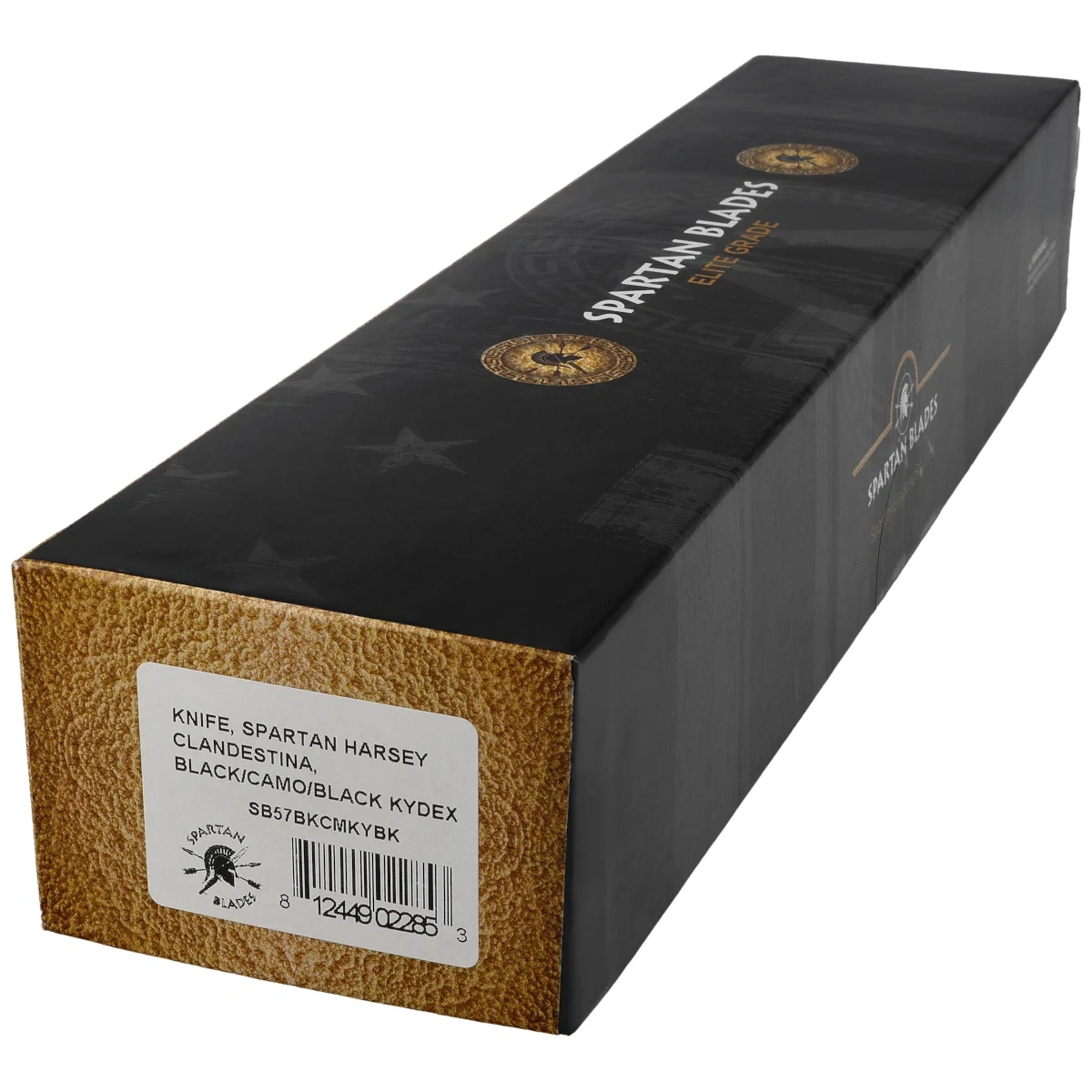 Product name: Spartan Harsey Clandestina Camo Linen Micarta, Black PVD Elite Grade.