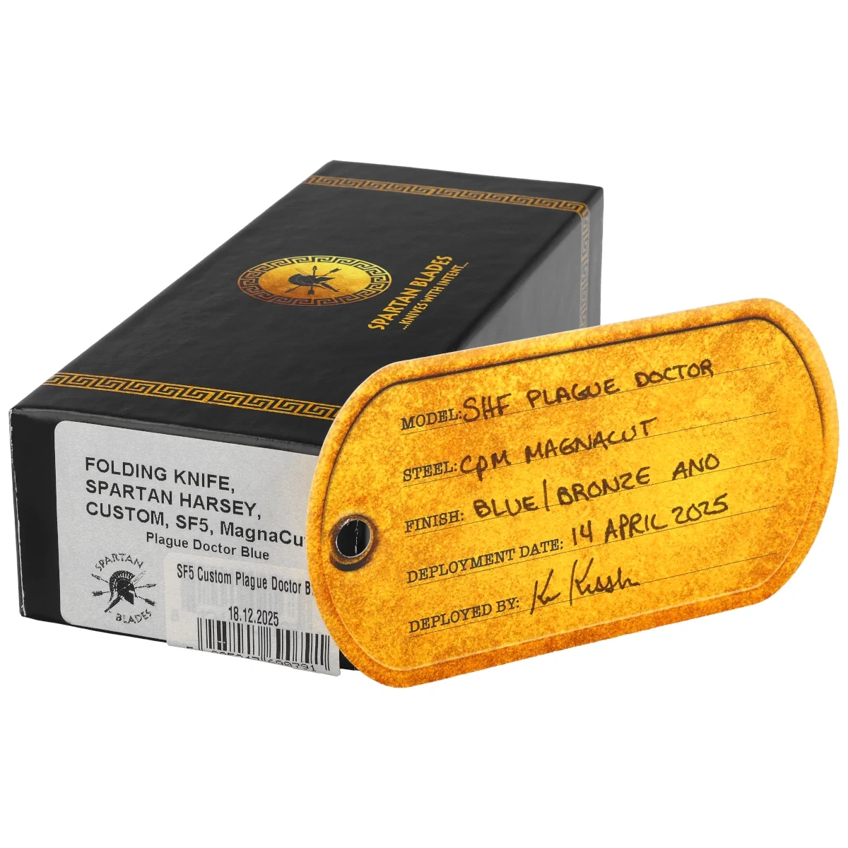Spartan Harsey Folder Special Edition “Plague Doctor” Blue Titanium, Satin. “Spartan Harsey Folder” or“SHF” is considered a masterpiece among tactical knives. Designed by knifemaking legend Bill Harsey , it was produced in a limited edition. Winner of the 2016 American Made Knife of The Year award at the Blade Show in Atlanta.