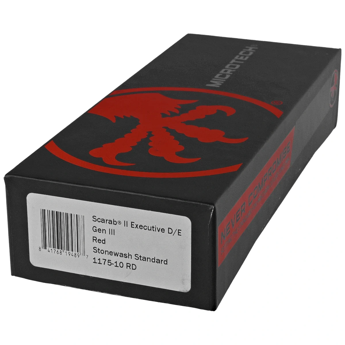The Scarab II Executive Gen III S/E Red Aluminum, Stonewashed is the pinnacle of excellence in automatic tactical knives, taking inspiration from the original Microtech Ultratech design. Built to withstand the toughest conditions, the new Scarab II is the ultimate choice for heavy use. While retaining the styling features of its predecessor, it sets a new standard for OTF (Out The Front) technology.