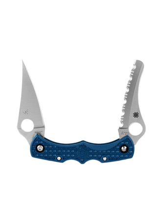 Handle - made of FRN (fiberglass reinforced nylon) plastic in cobalt blue, a hallmark of the SPY27 line. The Volcano Grip™ structure provides high grip and grip security in all conditions - both with wet hands and with gloves. The ergonomics of the Handle allows comfortable operation of both Blades regardless of the grip, and the lightweight and compact form makes the knife fit well in your pocket - the model is designed for in-pocket carry, without a clip, which increases discretion and comfort in carrying. The use of bolt-on construction increases strength and precision of assembly - important for knives with dual mechanics. The Spyderco Dyad Jr. Lightweight is a combination of conceptual boldness, modern materials and limited uniqueness, aimed at people who expect more from an EDC than just a blade.