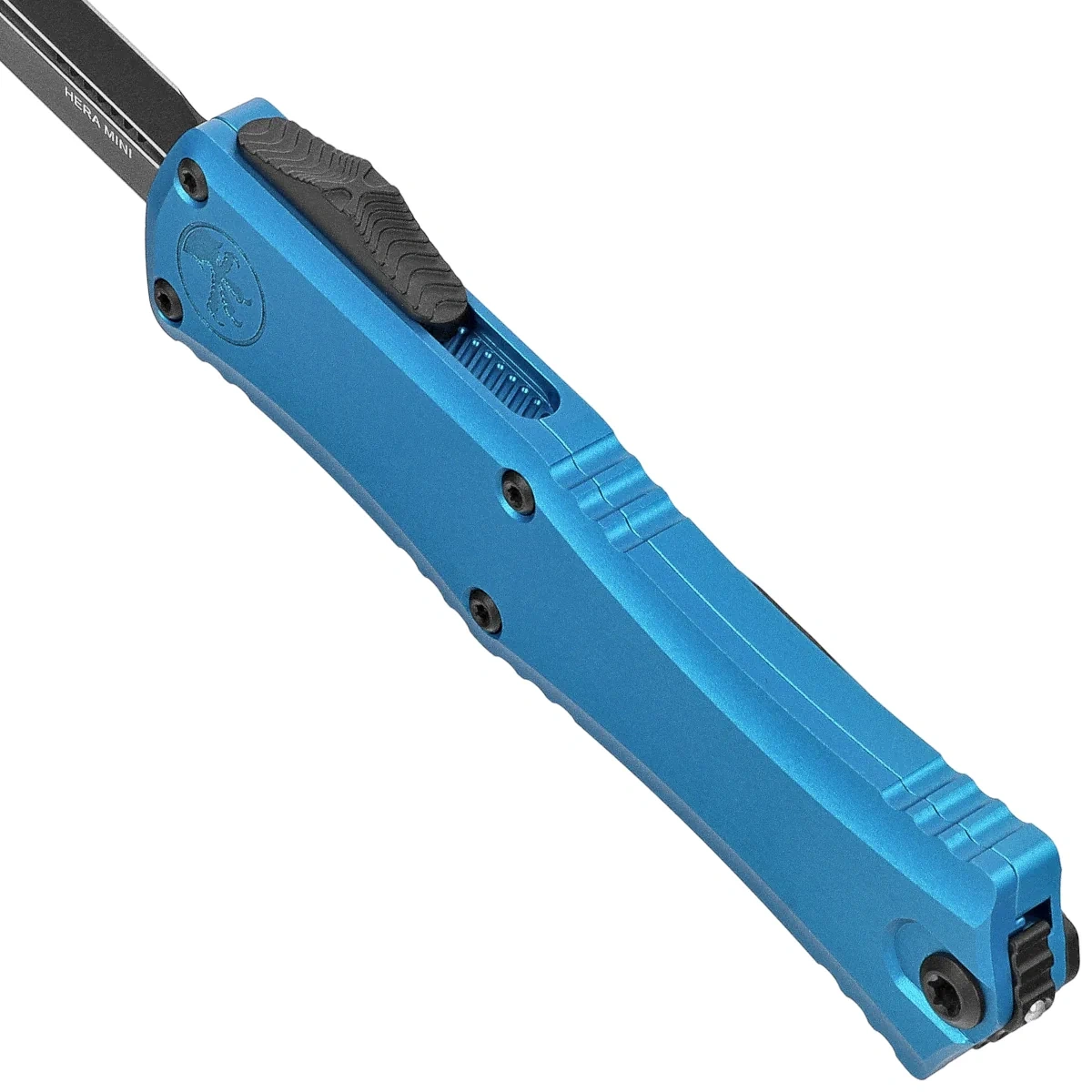 - Hera 2 Mini D/E Blue Aluminum, Black compact version of one of the best OTF knives, inspired by Troodon. Lightweight and easy to carry, while retaining the power and performance of larger designs. Project by A. Marfione owner of Microtech Knives.