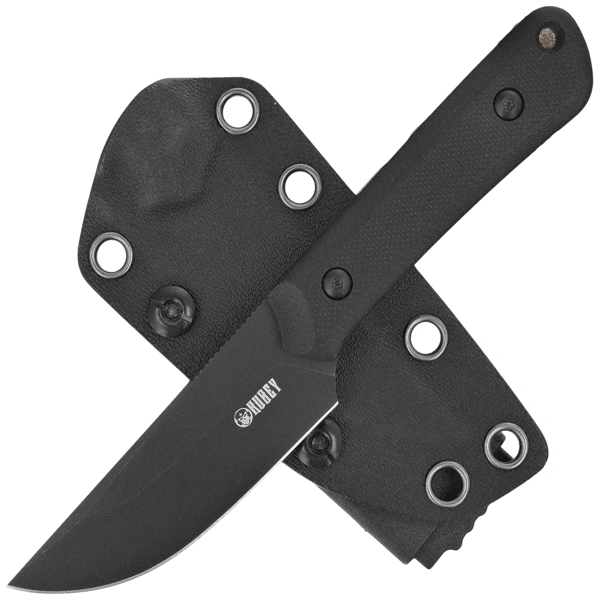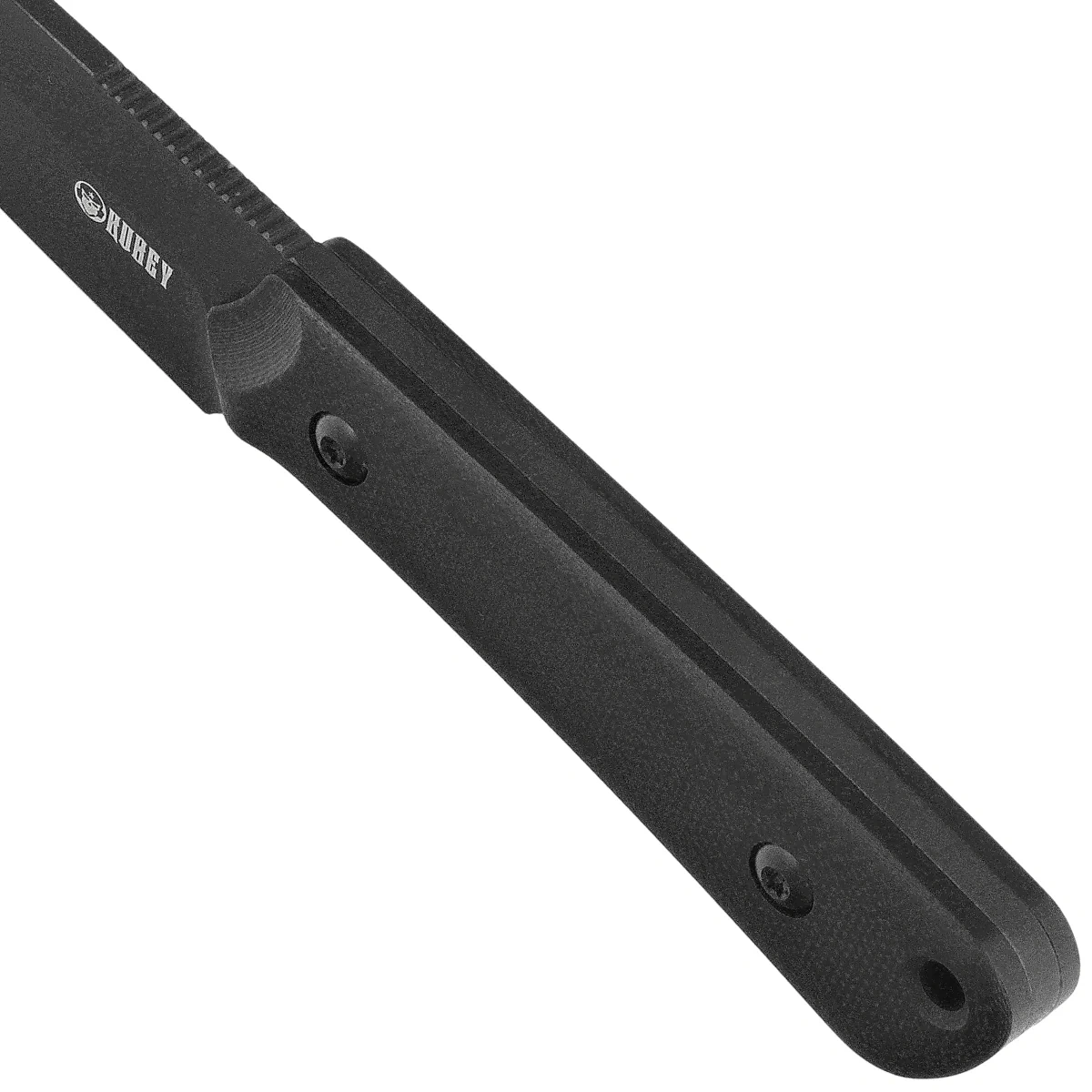 - Thorn Black G10, Blackwashed, a compact fixed-blade EDC/outdoor knife with a full-tang construction, a drop-point blade, a flat grind, and Sandvik 14C28N stainless steel. Includes a Kydex sheath with a Tek-Lok attachment. Designed by Scott Halpern.
