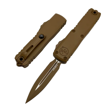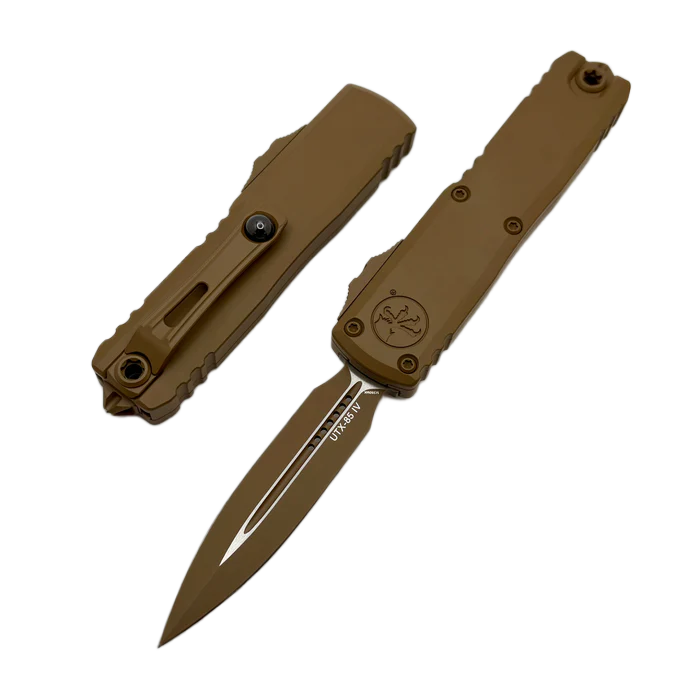 Microtech UTX-85 Gen IV D/E OTF Knife Cerakote Tan Aluminum, Cerakote Tan M390MK by Tony Marfione (12324-1CTA)