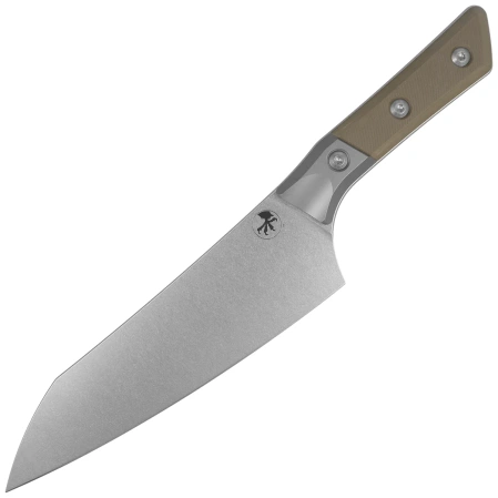 - Chef's 8" Knife OD Green G10/Titanium Bolster, Stonewashed - a premium kitchen knife that combines a precision Chef Blade made of M390MK steel with an ergonomic titanium/G10 Handle. A unique combination of durability, precision and modern aesthetics.