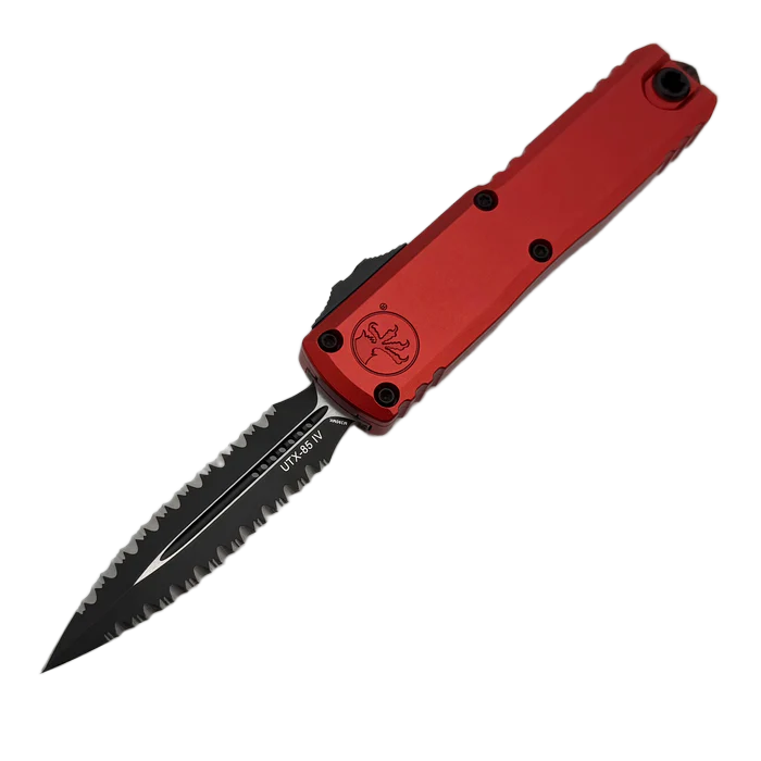 - UTX-85 Gen IV D/E Red Aluminum, Cerakote Black F/S is a compact OTF automatic knife from the UTX-85 series. Designed for EDC applications, it retains all the advantages of larger models. Operating in D/A mode, it features a fast blade extension mechanism.