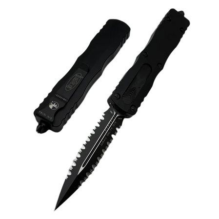 Dirac Delta® is an enlarged version of the first OTF D/A (Double Action) automatic knife in the Microtech® lineup, equipped with a slider located in a recess on the side of the handle. This model features a modern, ergonomic handle with curved lines inspired by the iconic HALO® model. The Dirac Delta® series incorporates Microtech®’s signature premium features—patented screws, an innovative internal mechanism, and a functional glass breaker. With a total length of 9.25 inches, the Dirac Delta® is an excellent choice as an everyday carry (EDC) knife.