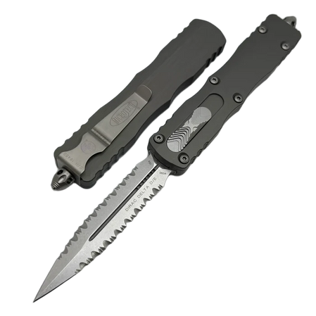 Dirac Delta® is an enlarged version of the first OTF D/A (Double Action) automatic knife in the Microtech® lineup, equipped with a slider located in a recess on the side of the handle. This model features a modern, ergonomic handle with curved lines inspired by the iconic HALO® model. The Dirac Delta® series incorporates Microtech®’s signature premium features—patented screws, an innovative internal mechanism, and a functional glass breaker. With a total length of 9.25 inches, the Dirac Delta® is an excellent choice as an everyday carry (EDC) knife.