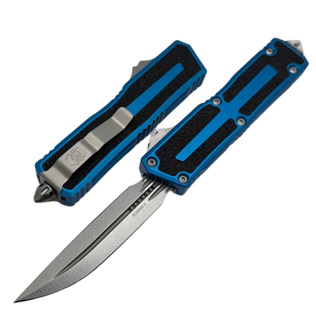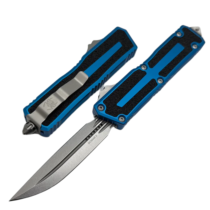 Microtech Scarab II Gen III D/E-S OTF Knife Blue Aluminium, Stonewashed M390MK by Tony Marfione (1180-10BL)