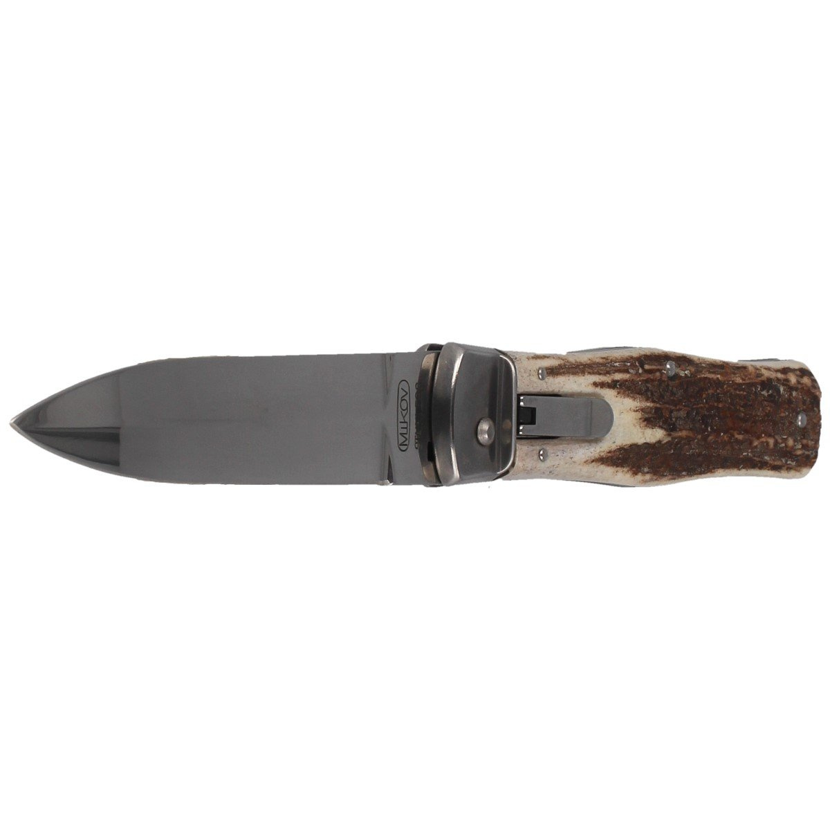 Predator Deer Stag, nóż automatyczny (swichblade) czeskiej firmy Mikov z Mikulasovic z okładzinami z poroża jelenia. Region ten od 1794 roku specjalizuje się w produkcji wyrobów nożowniczych, będąc nazywanym "czeskim Solingen".