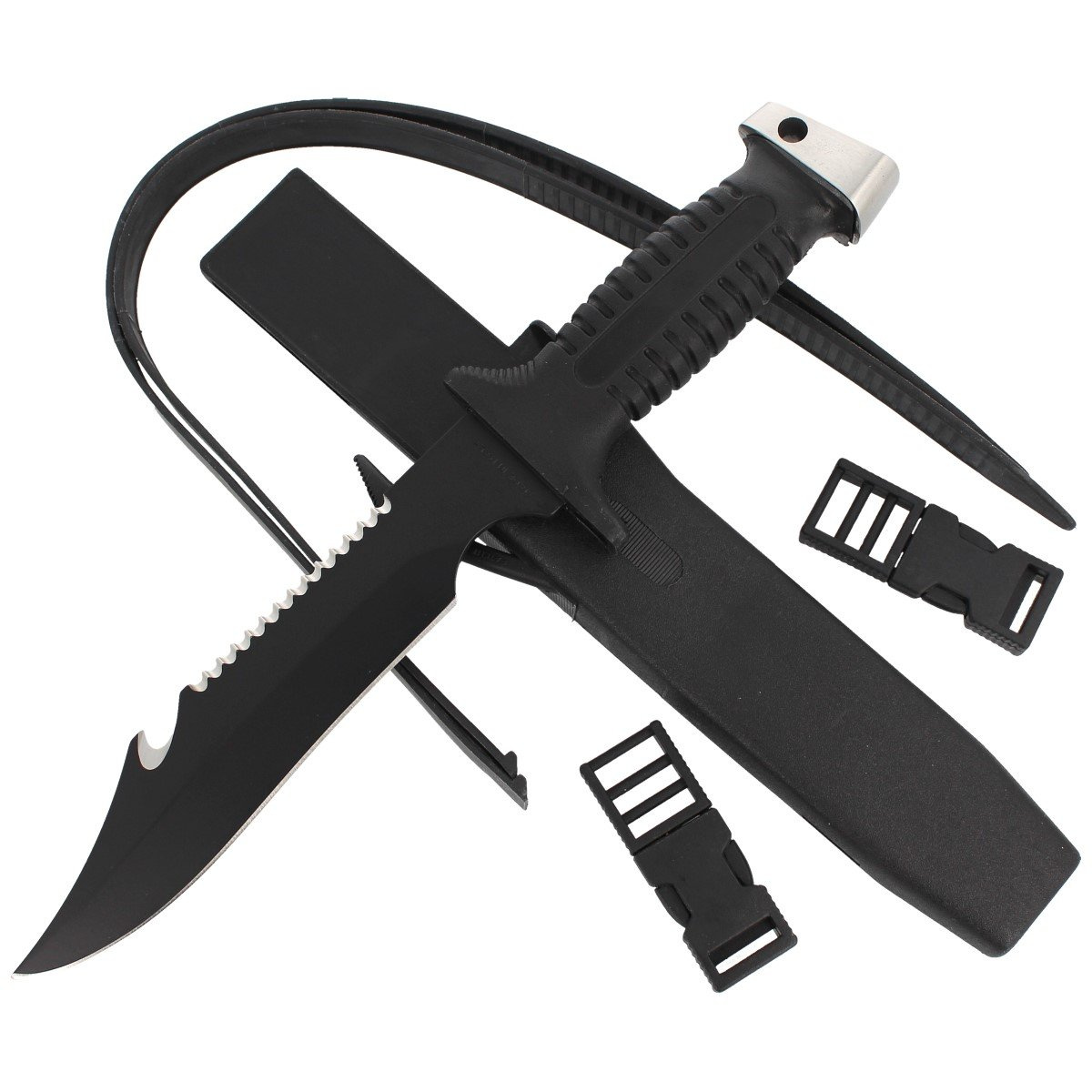 Pochwa - wykonane z twardego polimeru PP z otworami do odprowadzania wody, wilgoci. Kaburę wyposażono w zatrzask z blokadą zabezpieczający przed wysunięciem się noża w wodzie. Do pochwy dołączono dwa gumowe pasy oraz 2 klamry z tworzywa umożliwiające zamocowanie pochwy do wewnętrznej strony łydki / podudzia lub do jacketu.