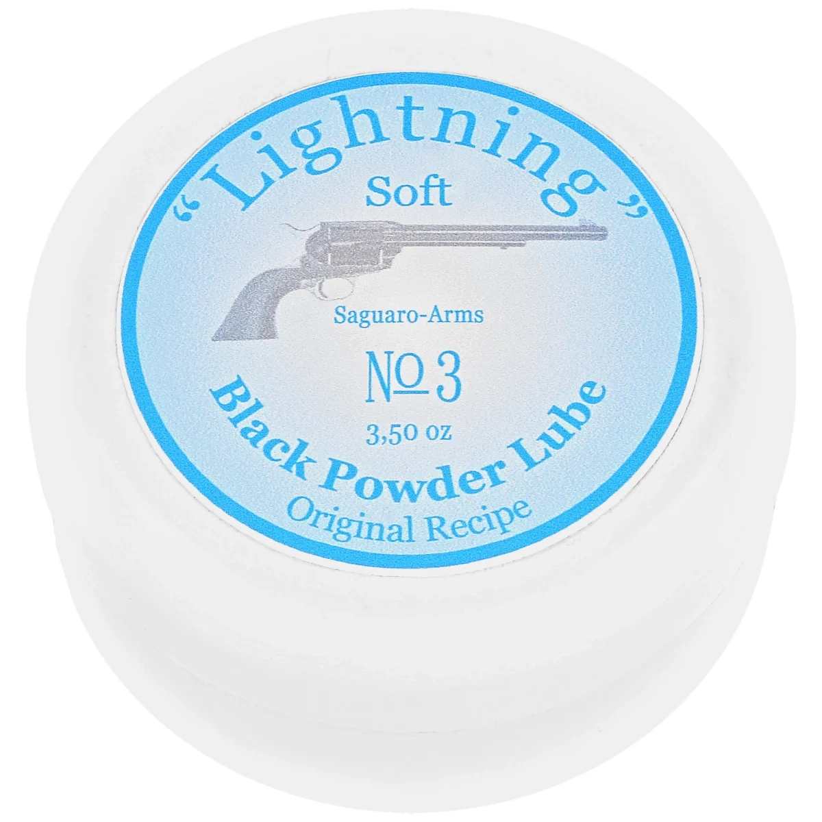 Lightning No 3 uniwersalny, miękki smar do smarowania pocisków do broni czarnoprochowej oraz flejtuchów. Przeznaczony do stosowania przy niskich temperaturach (poniżej 0ºC). Zalecany do smarowania gwintów kominków, mechanizmów wewnętrznych, osi w rewolwerach oraz do konserwacji broni. Opakowanie zawiera 100 g.
