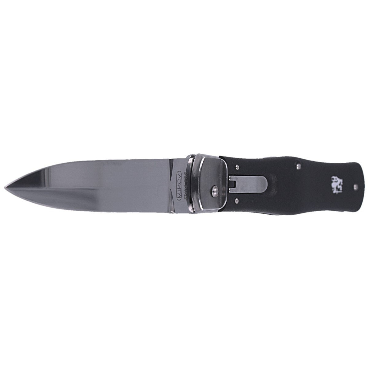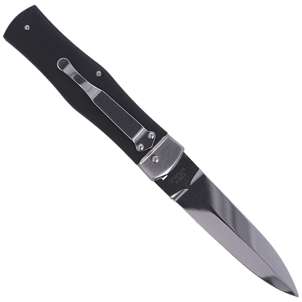Predator ABS BLACK z klipsem, nóż automatyczny typu swichblade czeskiej firmy Mikov z Mikulasovic z klipsem i okładzinami z ABS. Region ten od 1794 roku specjalizuje się w produkcji wyrobów nożowniczych, będąc nazywanym "czeskim Solingen".
