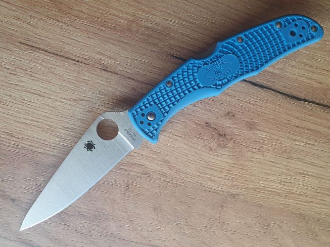 Numer produktu: C10FPBL Nazwa: Endura 4 Lightweight FRN Blue Full Flat Ground PlainEdge Rodzaj stali: VG-10 Długość głowni: 97.0 mm / 3.8" Grubość głowni: 3.0 mm / 0.118" Długość całkowita: 223.0 mm / 8.78" Długość złożony: 126.0 mm / 4.98" Waga: 96.0 g / 3.4 oz Rodzaj krawędzi tnącej: Plain (gładka) Rodzaj szlifu: Full Flat Grind (płaski pełny) Typ blokady: Back-Lock Rodzaj rękojeści: FRN, Bi-Directional Texturing Klips: 4-position ambidextrous, Tip-Up/Down Kraj pochodzenia: Japonia Producent: Spyderco, U.S.A.