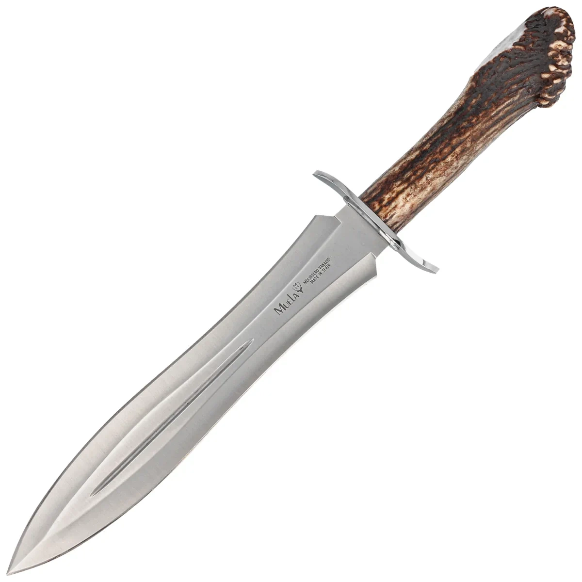 - BW-24S, kunsztownie wykonany, oryginalny nóż Remate ze stałą klingą firmy Muela. Wysokiej jakości materiały oraz staranne wykończenie detali. Rękojeść poroże jelenia (crown stag) z koroną, skórzana pochwa. Nóż dla kolekcjonerów, miłośników polowań.