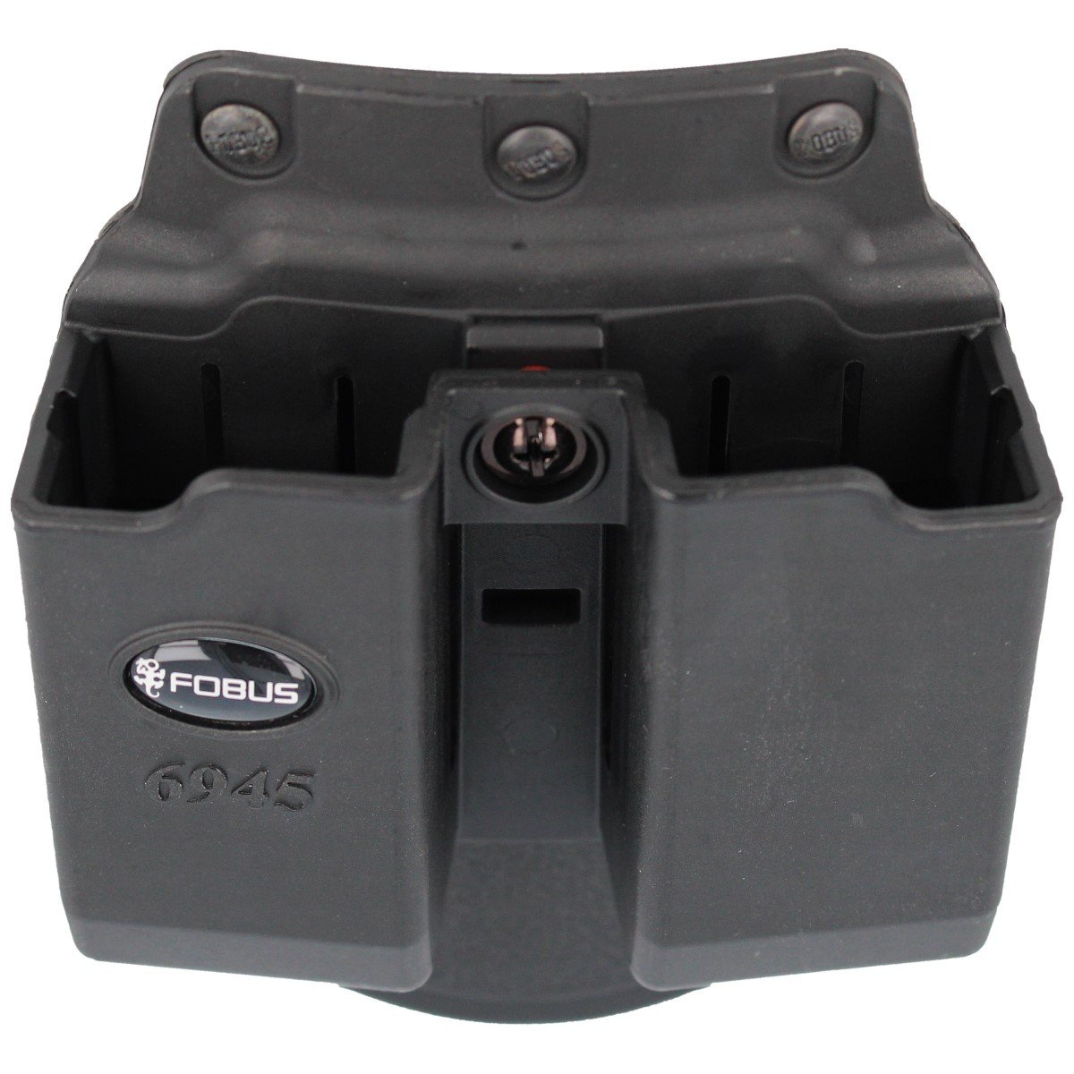 6945 (Paddle), ładownica typu otwartego firmy Fobus na dwa dwurzędowe magazynki pistoletowe w kalibrze .45 do pistoletu typu S&W, Springfield, H&K, Walther, FN, nie pasuje do pistoletu Glock. Uchwyt wykonano metodą wtryskową z odpornego na zarysowania, udar oraz ekstremalne temperatury tworzywa sztucznego o dużej gęstości.