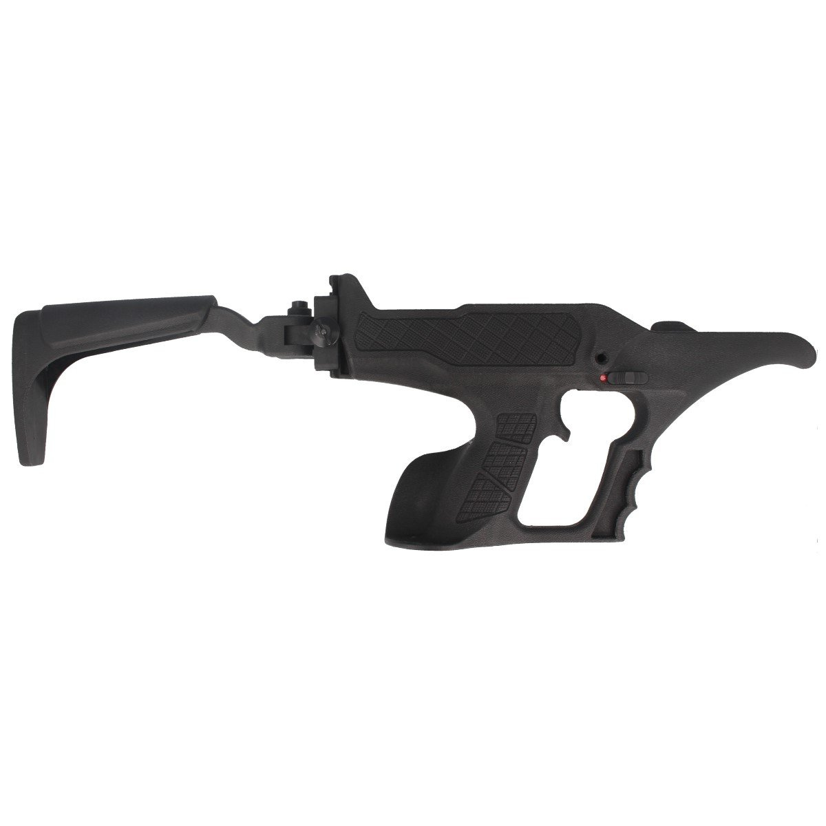 Osada - ergonomiczna wykonana z odpornego na uszkodzenia mechaniczne, wytrzymałego polimeru w kolorze czarnym.Wstawki z miękkiej gumy na chwycie pistoletowym oraz środkowej części łoża zapewniają pewność chwytu, również wilgotnymi dłońmi.