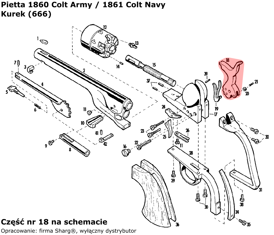 - 666 (serwis) kurek firmy Pietta do rewolwerów czarnoprochowych 1851 Colt Reb Nord Navy oraz 1860 Colt Army / 1861 Colt Navy.