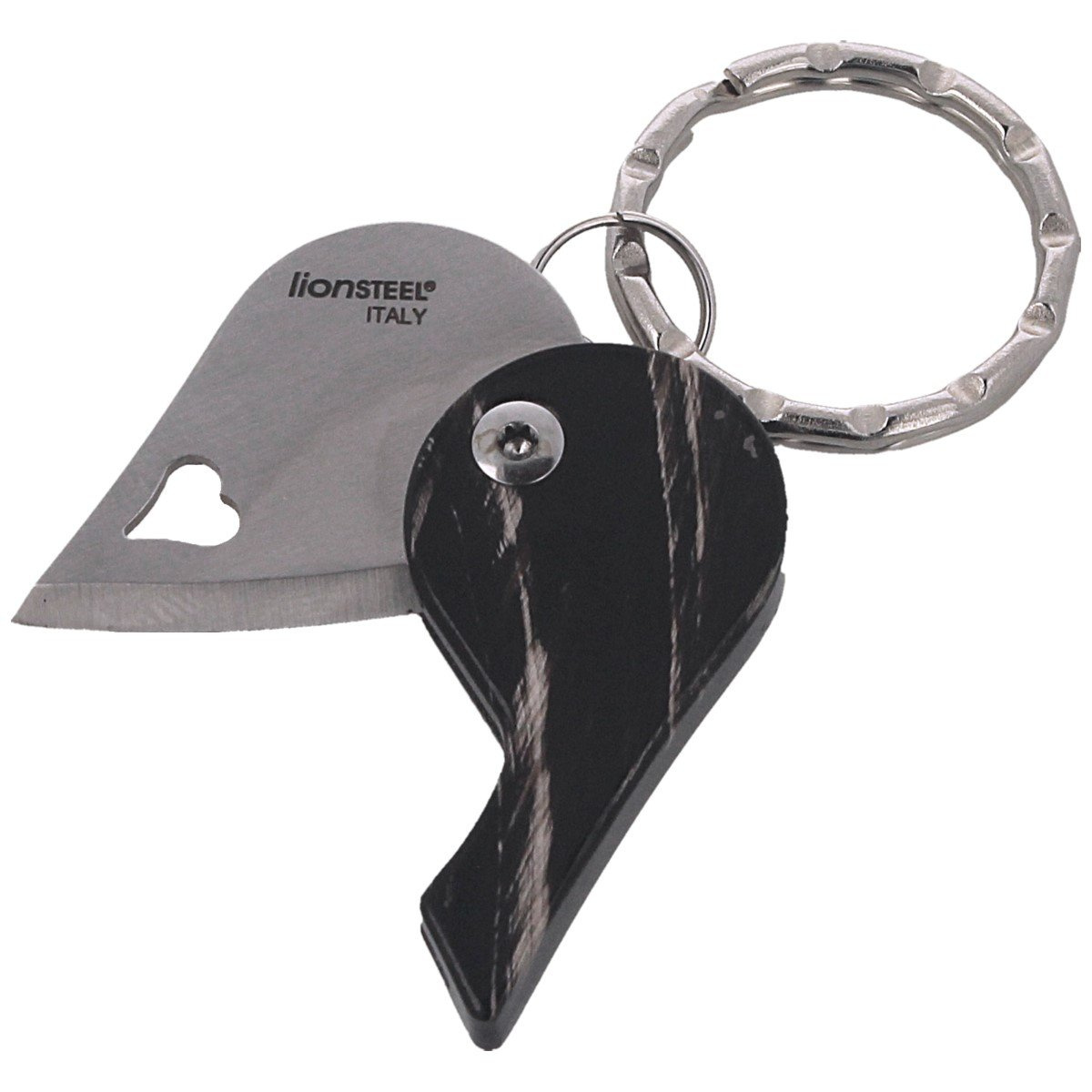 lionBEAT Buffalo Horn, ultralekki nóż włoskiej manufaktury LionSteel z okładzinami z rogu bawoła. Elegancki i funkcjonalny po złożeniu przybiera kształt serca. Można go wykorzystać na wiele różnych sposobów: jako brelok do kluczy, wisiorek do naszyjnika lub jako zawieszka do torby / torebki. Oryginalny gadżet lub pomysł na prezent dla ukochanej osoby.