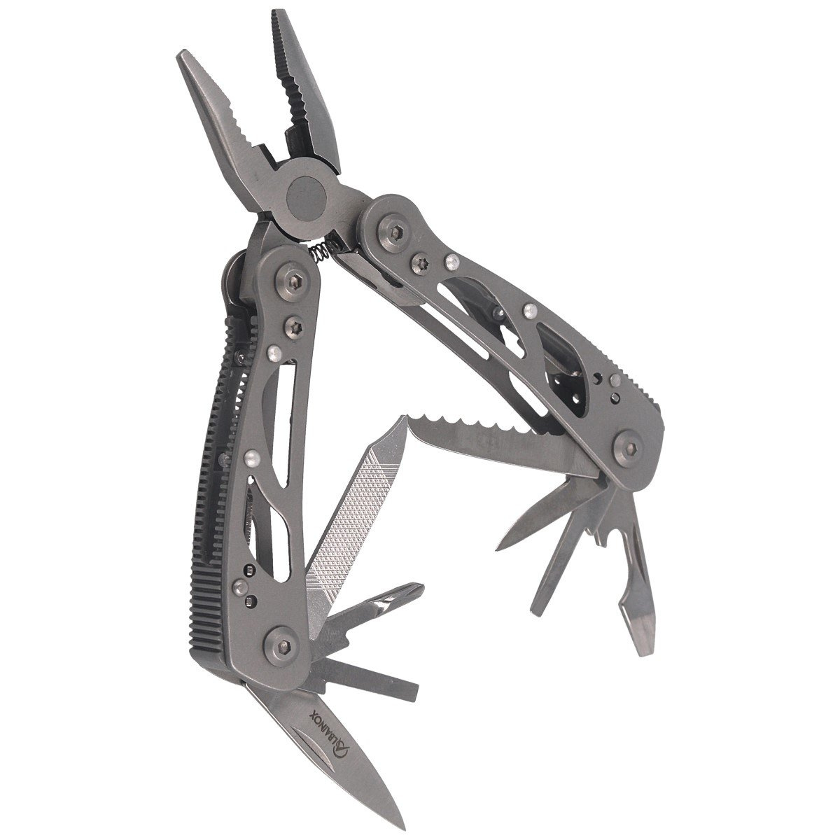 33925, 11-in-1 lekki multi-tool hiszpańskiej firmy Martinez Albainox. Mimo kompaktowych rozmiarów posiada komplet niezbędnych narzędzi w tym wielofunkcyjne kombinerki. Dzięki etui można go mieć zawsze pod ręką (na strzelnicy, w pracy, w domu, ogrodzie, podczas wyprawy survivalowej lub turystycznej). Kompaktowe rozmiary umożliwiają łatwe przenoszenie i wykorzystywane podczas codziennych zadań. Bestseller!