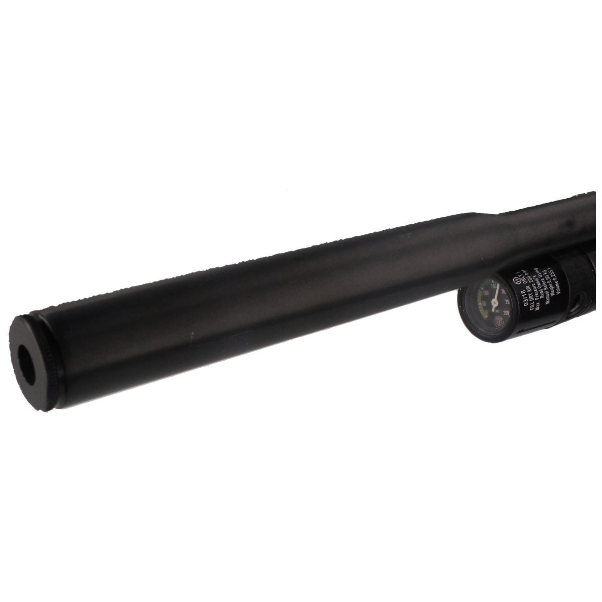Zasilanie - aluminiowy zbiornik sprężonego powietrza o pojemności 255 cc. W pełni naładowany kartusz pozwala na oddanie 19 efektywnych strzałów (dane dla wersji FAC*). Wbudowany manometr pozwala kontrolować ciśnienie znajdujące się w zbiorniku, a tym samym stopnień jego naładowania. Obrotowy pierścień chroni wlot ładowania przed uszkodzeniem. Po opróżnieniu sprężonego powietrza, pusty zbiornik może zostać zastąpiony nowym napełnionym (opcja). Stanowi to doskonałe rozwiązanie dla osób nie zamierzających zabierać pompki PCP czy butli na strzelnicę. 130 bar minimalne ciśnienie robocze w kartuszu rekomendowane przez producenta do prawidłowego działania wiatrówki.