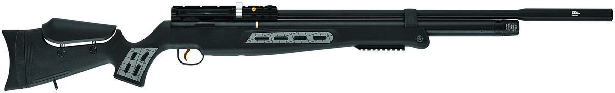 Lufa - precyzyjna gwintowana o długości 23" (585 mm) Hatsan QE (QuietEnergy) zakończona integralnym tłumikiem dźwięku redukującym o -50% odgłos wystrzału. Takie rozwiązanie zachowuje maksymalną energię wylotową śrucin, co może być utrudnione w wypadku stosowania opcjonalnego tłumika. Dokręcany tłumik może osłabiać energię strzału jak i zmienić parametry balistyczne pocisku a przyrządy optyczne mogą wymagać ponownej kalibracji. Zwężona u wylotu lufa (czok). Lufa jest jednym z najważniejszych elementów każdej broni / wiatrówki, jakość jej wykonania ma olbrzymi wpływ na celność każdej broni.