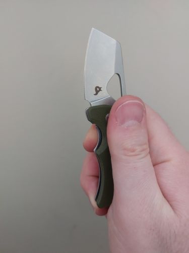 Maleńki nożyk, którego trudno traktować jako pełnoprawnego EDC. Bardzo fajny zamiennik, gdy nie możemy mieć przy sobie większego ostrza. Poręczny, krótka klinga o lekkiej krzywiźnie jest chyba idealnym rozwiązaniem w tym wypadku. Mechanizm otwierania nie działa powalająco, raczej nie ma co tu marzyć o szybkim otwarciu noża jedną ręką. Stal wydaje się dość przyjemna, choć tego noża jeszcze nie ostrzyłem. Fajny mały zastępczak, ale to tylko erzac podstawowego noża. 4/5