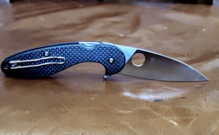 Głownia - smukła i ostra Drop Point z gładkim ostrzem Plain z eleganckim, satynowym wykończeniem klingi. Całkowicie płaski szlif (Full Flat Grind), zapewnia wyjątkową geometrię krawędzi, a nieznacznie ujemny kąt nachylenia ostrza do rękojeści zwiększa jego dźwignię tnącą i skraca łuk otwarcia, zapewniając szybkie, pozytywne rozłożenie. Dwa systemy szybkiego otwarcia głowni: płetwa flippera i okrągłe wycięcie Round Hole, patent Spyderco. Głęboki index-finger choil, podcięcie pod palec wskazujący dla kontroli uchwytu foldera a także ochrony palca przed zsunięciem się na ostrze.