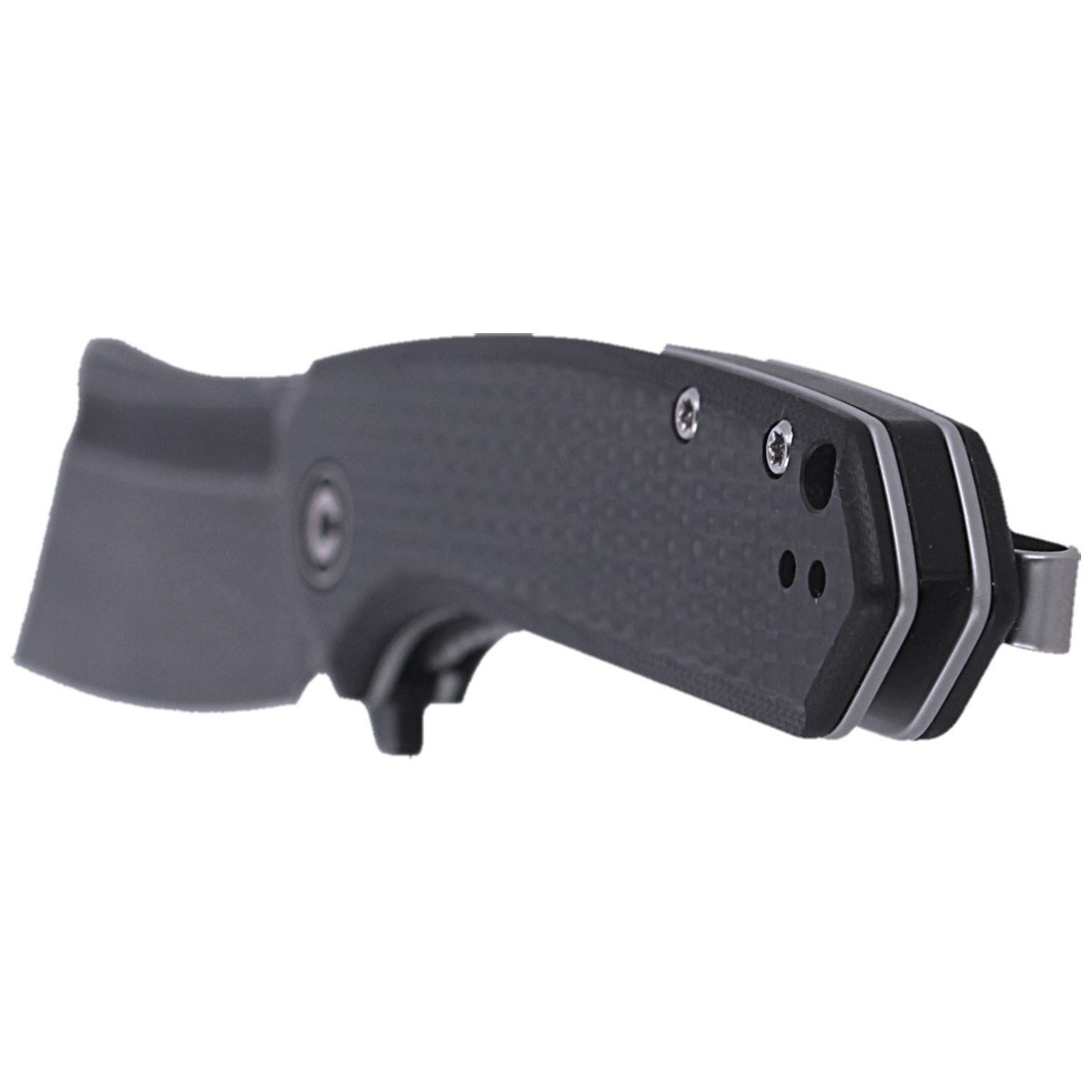 Głownia - typu cleaver (tasak). Wydatny brzusiec wydłuża długość krawędzi tnącej w stosunku do długości klingi. Grubość klingi zapewnia wytrzymałość podczas gdy wysoki, płaski szlif gwarantuje doskonałe właściwości tnące. Ceramiczne łożyska kulkowe wspomagają płynną pracę mechanizmu otwierającego klingę, którą można otworzyć na dwa sposoby, za pomocą wyfrezowanego wgłębienia w klindze, nail nick lub szybkiej płetwy flippera (index-finger flipper). Po otwarciu płetwa tworzy mini-gardę zapobiegającą ześlizgnięciu się dłoni na ostrze. Solidny mechanizmem blokady Liner-Lock.